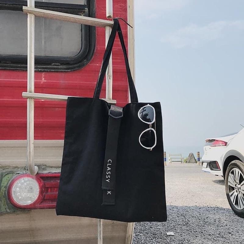Túi Tote Túi Vải Canvas đeo vai Black đen phong cách Hàn Quốc cá tính