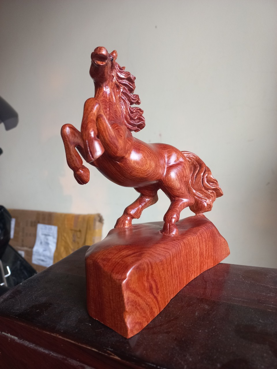 Tượng con ngựa trang trí phong thủy bằng gỗ hương đá kt cao 20×15×8cm