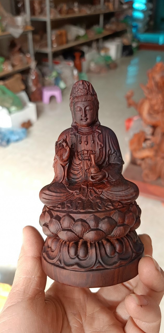 Tượng phật bà quan âm bồ tát bằng gỗ trắc đỏ đen kt 12×6×6cm