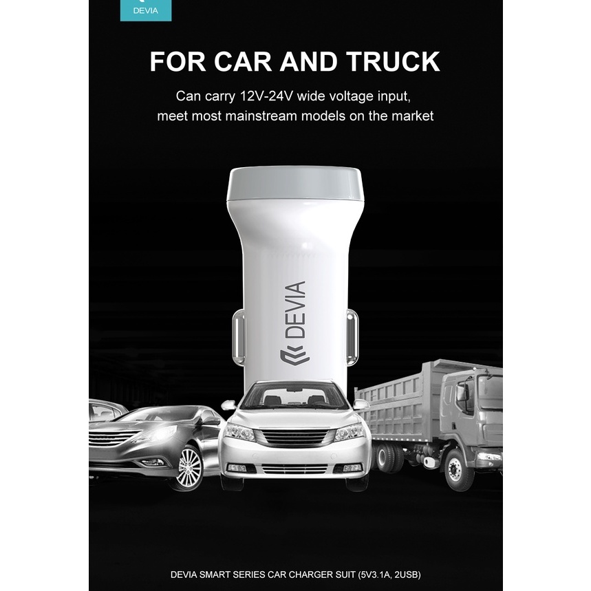 _______ THÔNG TIN SẢN PHẨM - Chất liệu sản phẩm: làm bằng nhựa ABS +PC chống cháy + vòng kim loại, rất an toàn khi sử dụng - Tốc độ sạc: Đầu ra 2 cổng USB + Output#1: 5V 1A + Ouput#2: 5V 2.4A 2.4A max - Tẩu sạc ô tô, xe hơi 2 cổng Devia smart series có kiểu dáng nhỏ gọn, không chiến nhiều diện tích trên ô tô, tương thích với nhiều loại xe khác nhau - Tẩu sạc ô tô, xe hơi 2 cổng Devia smart series có nguồn điện áp vào 12V-24V, đáp ứng hầu hết các dòng máy chủ đạo trên thị trường. - Màu sắc: Dên, Trắng BỘ SẢN PHẨM BAO GÔM: 1 X DÂY SẠC 1 X VỎ HỘP SẢN PHẨM 1 X HƯỚNG DẪN SỬ DỤNG Sản phẩm được phân phối và bảo hành tại công ty Manigo:Giá sản phẩm trên Tiki đã bao gồm thuế theo luật hiện hành. Bên cạnh đó, tuỳ vào loại sản phẩm, hình thức và địa chỉ giao hàng mà có thể phát sinh thêm chi phí khác như phí vận chuyển, phụ phí hàng cồng kềnh, thuế nhập khẩu (đối với đơn hàng giao từ nước ngoài có giá trị trên 1 triệu đồng).....