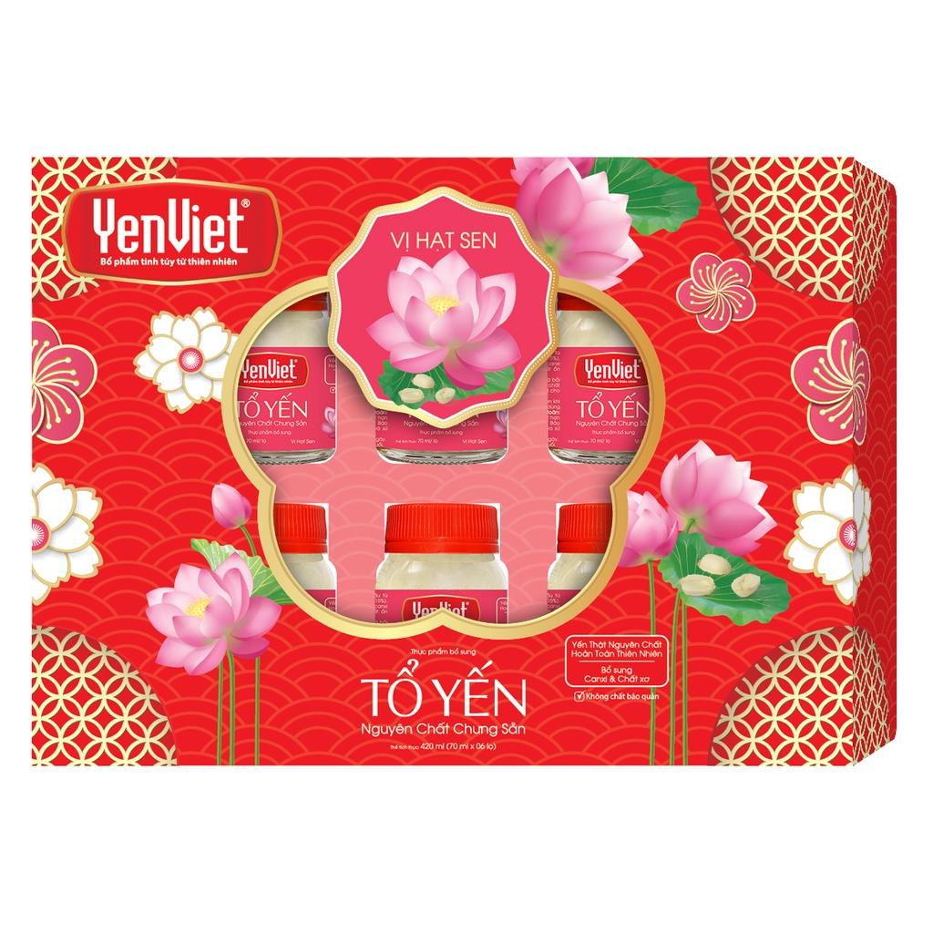 • Hàm lượng yến vượt trội • Nước dùng được nấu từ hạt sen tươi. • Công dụng: - Giải khát và bồi bổ cơ thể. - Hạn chế quá trình lão hóa, tăng cường sức khỏe và đẹp da. - Tăng sức đề kháng, giảm ốm đau, ngủ sâu giấc. - Bổ xung can xi và chất xơ giúp xương chắc khỏe, tốt cho tiêu hóa • Là món quà ý nghĩa cho người thân. ------------- TỔ YẾN NGUYÊN CHẤT CHƯNG SẴN - VỊ HẠT SEN Từ những tổ yến thiên nhiên nguyên chất của Yến Việt, bằng quy trình chế biến hiện đại hòa quyện với nước dùng được nấu từ hạt sen tươi nhằm bảo toàn những dưỡng chất tự nhiên và tinh túy nhất. Tất cả đem lại cho bạn sản phẩm Tổ Yến Nguyên Chất Chưng Sẵn, hương sen hài hòa tinh tế đến khó quên. - Thành phần: Nước, nước nấu từ hạt sen tươi (30%), tổ yến (15%), đường phèn, chất xơ, canxi lactate, agar (INS 406), chất ổn định (INS 401, INS 407) --------------- TỔ YẾN NGUYÊN CHẤT CHƯNG SẴN - KHÔNG ĐƯỜNG Từ những tổ yến thiên nhiên nguyên chất của Yến Việt, bằng quy trình chế biến hiện đại hòa quyện với chiết xuất cây cỏ ngọt nhằm bảo toàn những dưỡng chất tự nhiên và tinh túy nhất. - Thành phần: Nước, Tổ yến 15%, isomalt, chiết xuất từ cây cỏ ngọt, chất xơ, canxi lactate, agar (INS 406), chất ổn định (INS 401, INS 407), hương tổ yến tổng hợp - Hướng dẫn sử dụng & Bảo quản: Ngon hơn khi uống lạnh. Lắc nhẹ trước khi dùng. - Bảo quản nơi khô ráo, thoáng mát Giá sản phẩm trên Tiki đã bao gồm thuế theo luật hiện hành. Bên cạnh đó, tuỳ vào loại sản phẩm, hình thức và địa chỉ giao hàng mà có thể phát sinh thêm chi phí khác như phí vận chuyển, phụ phí hàng cồng kềnh, thuế nhập khẩu (đối với đơn hàng giao từ nước ngoài có giá trị trên 1 triệu đồng).....