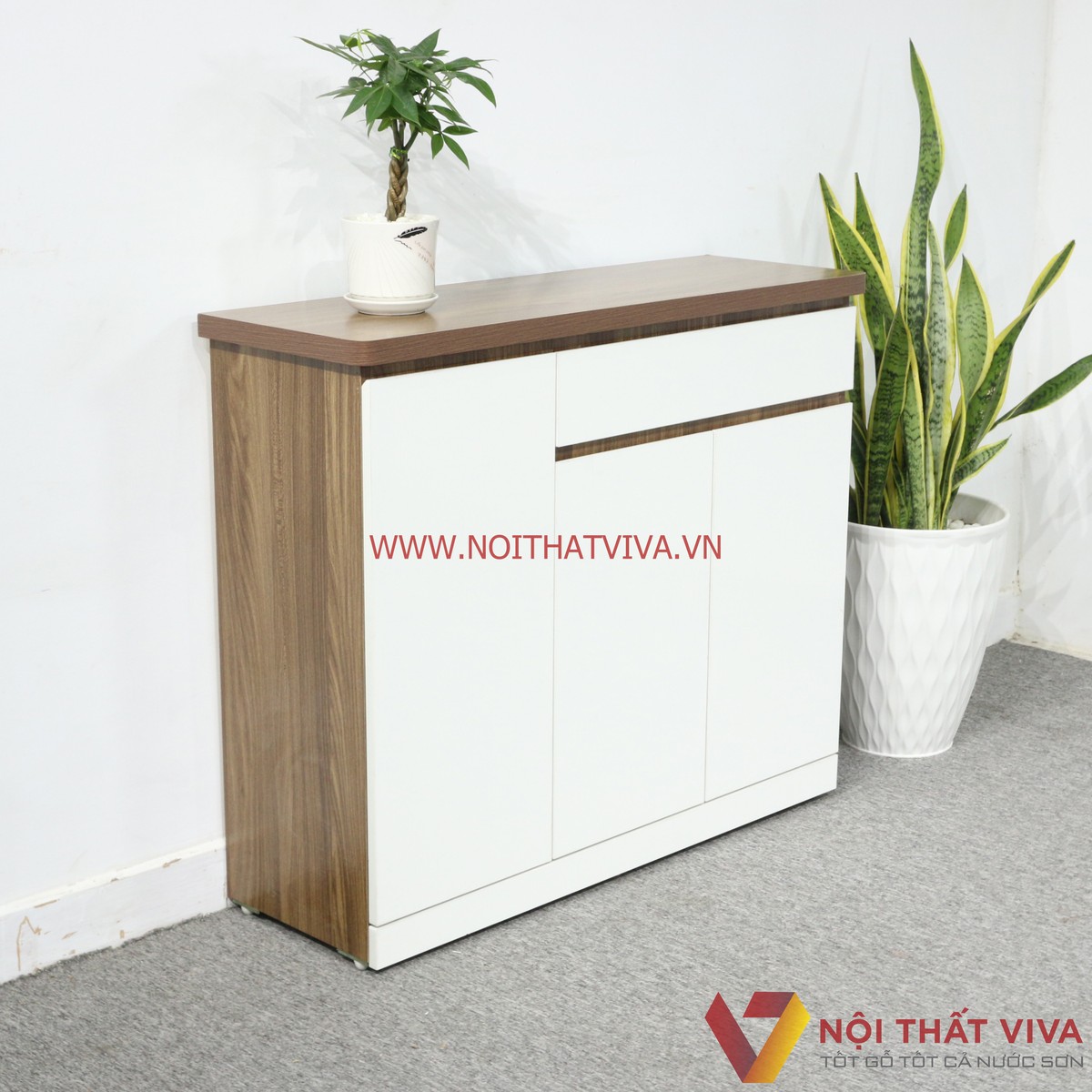 Tủ Giày Dép Gỗ MDF Melamine Màu Óc Chó Cánh Trắng Đẹp Giá Rẻ