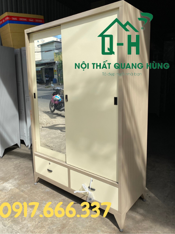 TỦ SẮT SƠN TĨNH ĐIỆN 2 CÁNH CỬA LÙA CAO CẤP Kích thước : cao 1m8 ngang 1m2 sâu 50cm Chất liệu : sơn tĩnh điện Màu sắc: kem sữa cà phê Tủ gồm 2 cánh cửa lùa màu nhạt thích hợp cho các gia đình thích màu trầm. Tủ gồm 1 cánh treo quần áo và 1 cánh xếp gọn đồ dùng. Chất sơn tĩnh điện cao cấp giúp chiếc tủ luôn giữ như mới Tủ của lùa tiết kiệm diện tích hơn so với các tủ cửa mở. Bên dưới tủ có 2 ngăn kéo nhỏ đựng thêm được nhiều đồ dùng khác. Tủ dày với khả năng chịu lực cao. Hình ảnh thực tế dể dàng di chuyển cũng như dọn dẹp Giá sản phẩm trên Tiki đã bao gồm thuế theo luật hiện hành. Bên cạnh đó, tuỳ vào loại sản phẩm, hình thức và địa chỉ giao hàng mà có thể phát sinh thêm chi phí khác như phí vận chuyển, phụ phí hàng cồng kềnh, thuế nhập khẩu (đối với đơn hàng giao từ nước ngoài có giá trị trên 1 triệu đồng).....