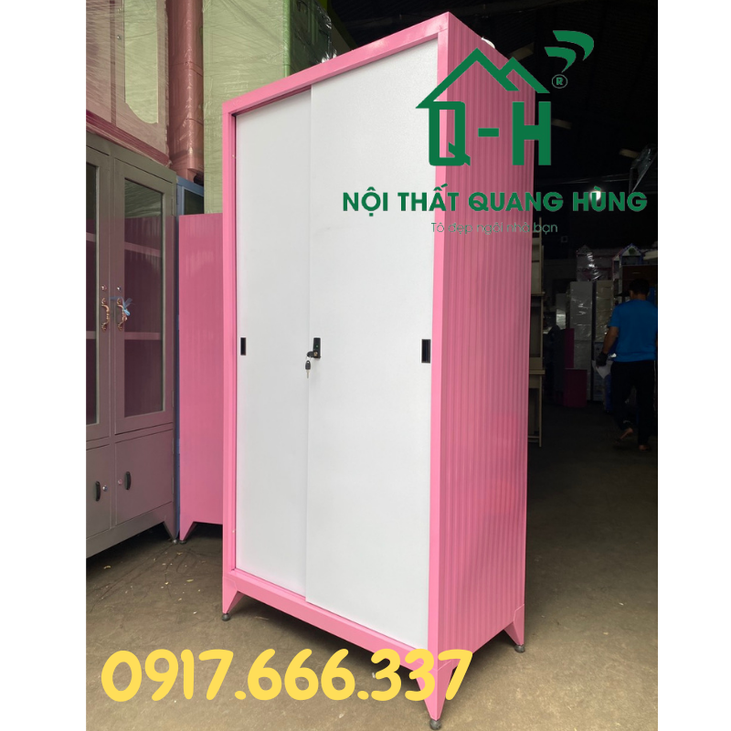 TỦ SẮT ĐỰNG QUẦN ÁO 2 CÁNH CỬA LÙA SƠN TĨNH ĐIỆN MÀU HỒNG