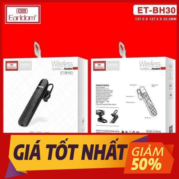 Tai Nghe Bluetooth Earldom BH30 (1 Tai) - Đáp ứng các điều kiện của người sử dụng về kiểu dáng tính năng thông dụng của sản phẩm, chất lượng âm thanh Earldom cho dòng sản phẩm tai nghe B...
