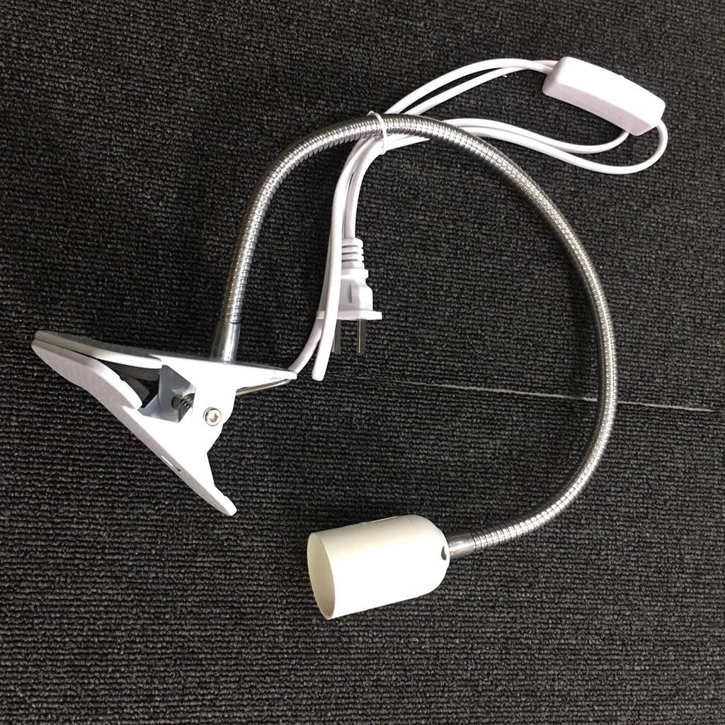 Thân đèn kẹp bàn - Kích thước: 60cm - Có thể bẻ cong, đầu gắn bóng có thể xoay 360 độ. - Trọn bộ (thân đèn và bóng đèn): 180k - Thân đèn: 100k - Bóng đèn: 90k - Kiểu đui đ...