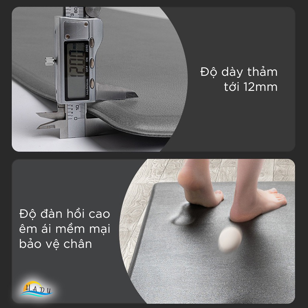 Thảm Nhà Bếp Chống Trượt Thấm Nước Cao Cấp Da PU Dày 12mm 44x81cm Độ Đàn Hồi Cao Êm Chân HADU