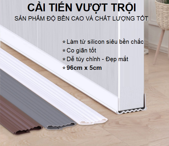 Lắp cho cửa rộng 95cmĐộ dày của cửa : 3.5 – 5.5cmĐộ hở giữa cửa với mặt đất : 0,3 - 1cmChất liệu : Silicon thế hệ mớiSản phẩm có 3 màu: Trắng, Nâu, XámHạn chế thoát nhiệt ra bên ngoài tiết kiệm đ...