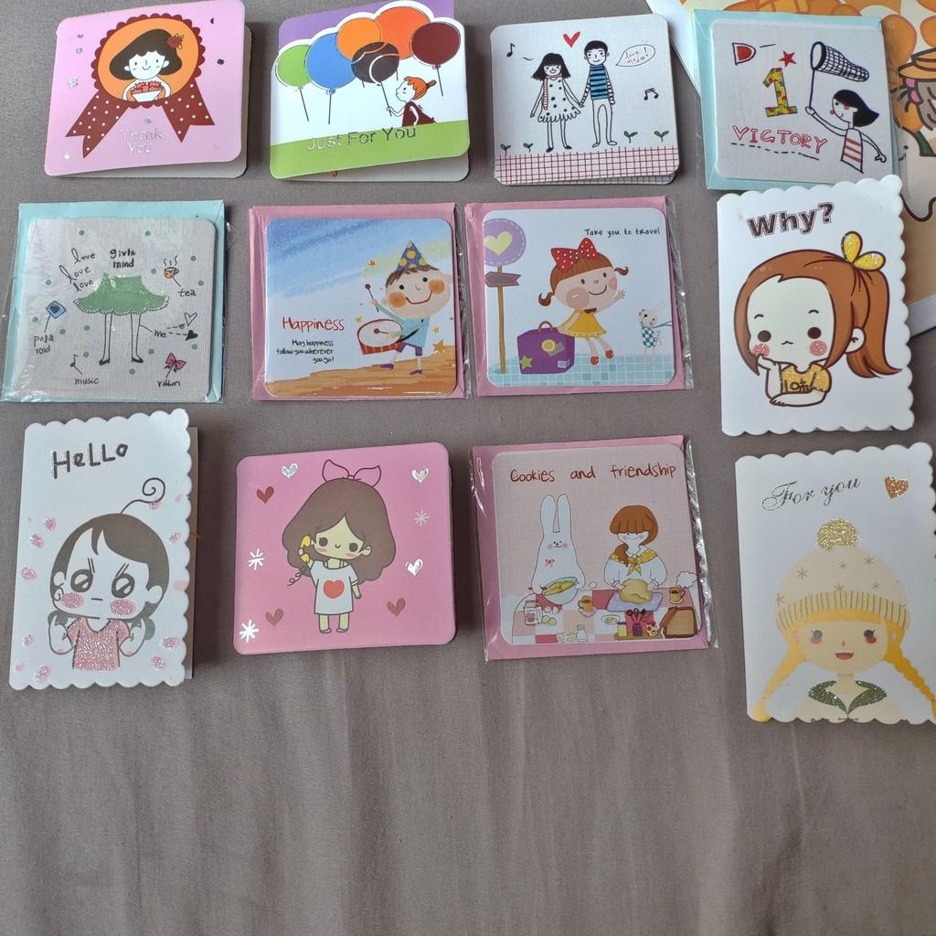 Bộ sưu tập những chiếc thiệp nhỏ xinh đủ các chủ đề cho các dùng vào mỗi dịp khác nhau từ sinh nhật, gặp mặt, kỉ niệm vv Kích thước: từ 4-8cm, tùy mẫu có size to nhỏ khác nhau Chất...