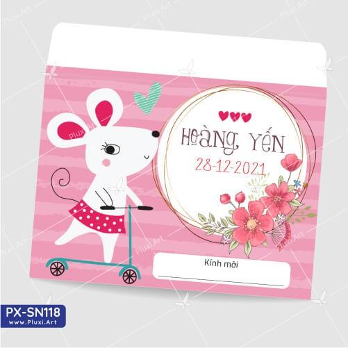 Thiệp thôi nôi – sinh nhật Pluxi bé Gái tuổi Chuột PX_SN118