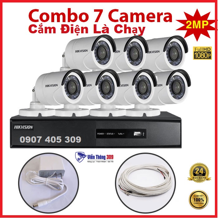 Trọn Bộ Hikvision 7 Camera - Full phụ kiện - Cắm Điện Là Chạy- Hàng chính hãng