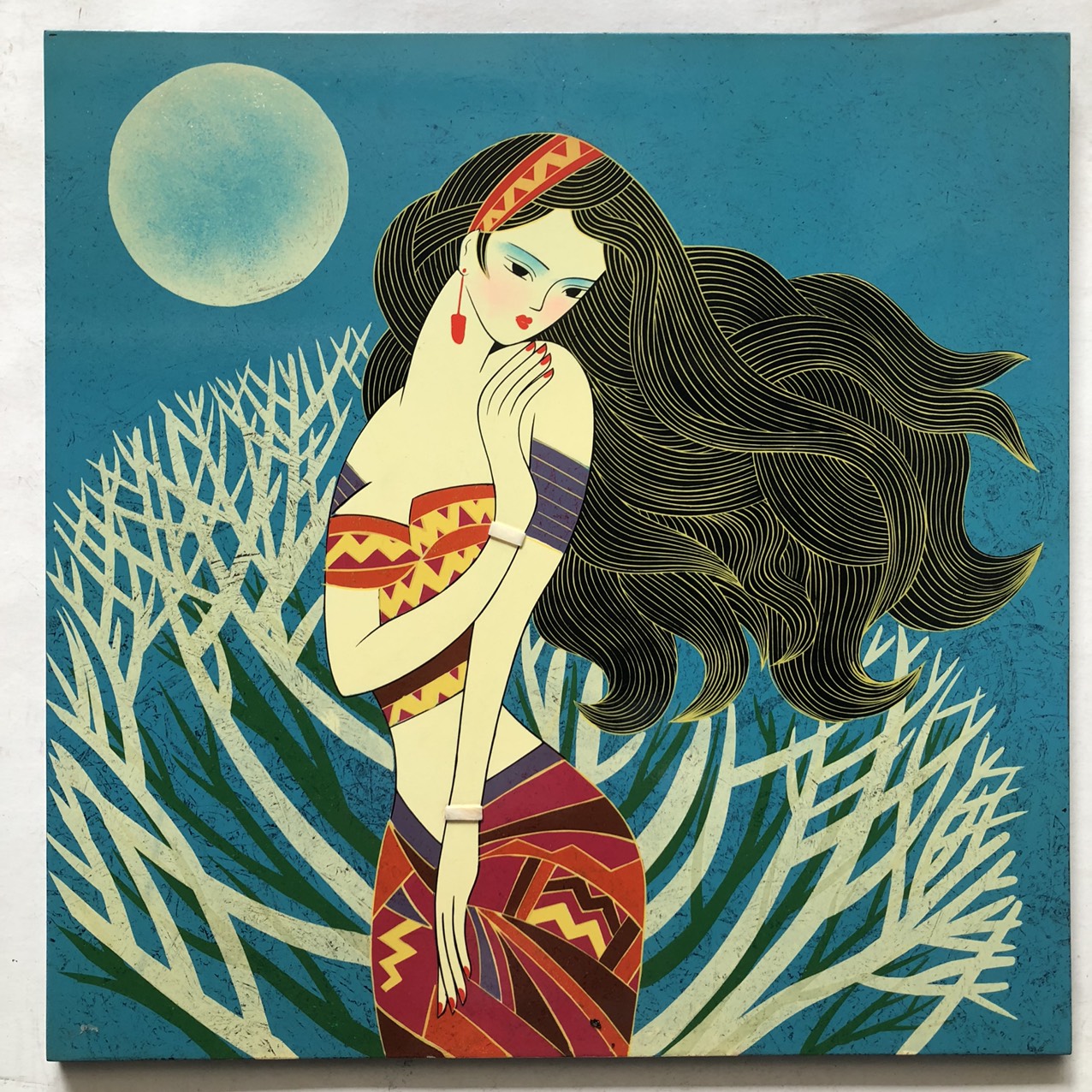 Tranh Cách Điệu Cô Gái Sơn Mài Cao Cấp Thanh Bình Lê 40x40