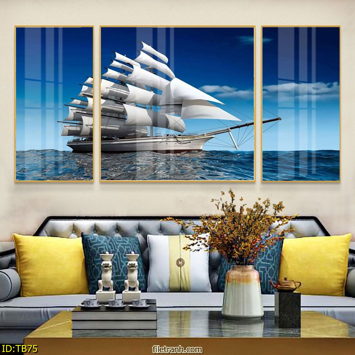 Tranh Canvas Thuận Buồm Xuôi Gió Phong Thủy Tài Lộc - Bộ 3 Bức Decor Phòng Khách Đẹp