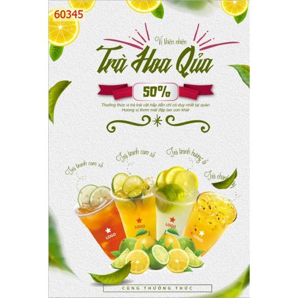 Tranh dán tường 3D dán quán trà chanh, trà sữa-