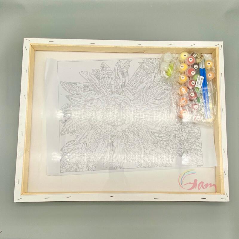 Tranh tự tô màu theo số Mèo và hoa hướng dương mới lọ màu to 5ml + 2 bộ cọ + khung 2.5cm DV4558