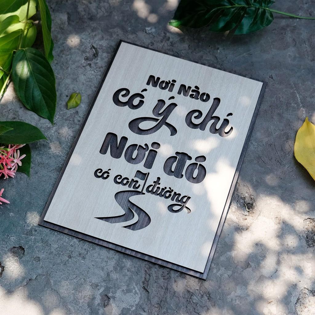 ️️ THÔNG TIN CHI TIẾT - Sản phẩm: trang treo tường gỗ khắc laser - Kích thước: 20x27cm | 30x40cm - Độ dày: 6mm - Màu sắc: Vân gỗ venner 2 lớp - Nội dung: "Nơi nào có ý chí nơi đó có con đường" - Mặt sau: có sẵn móc treo Đơn vị cung cấp và chịu trách nhiệm trực tiếp về sản phẩm: CÔNG TY TNHH XÂY DỰNG VÀ QUẢNG CÁO KHỞI MỘC Sản phẩm được sản xuất tại Việt Nam xưởng sản xuất Khởi Mộc. Giá sản phẩm trên Tiki đã bao gồm thuế theo luật hiện hành. Bên cạnh đó, tuỳ vào loại sản phẩm, hình thức và địa chỉ giao hàng mà có thể phát sinh thêm chi phí khác như phí vận chuyển, phụ phí hàng cồng kềnh, thuế nhập khẩu (đối với đơn hàng giao từ nước ngoài có giá trị trên 1 triệu đồng).....