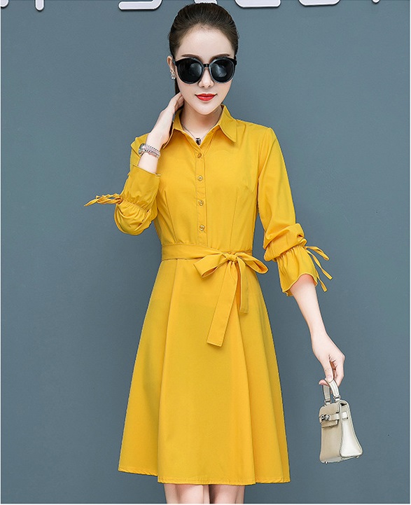 Váy Sơ Mi Thiết Kế Nhún Eo Thanh Lịch, Đầm Sơ Mi Công Sở Nữ Haint Boutique Da52