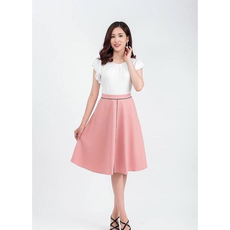 Váy xòe công sở hồng viền