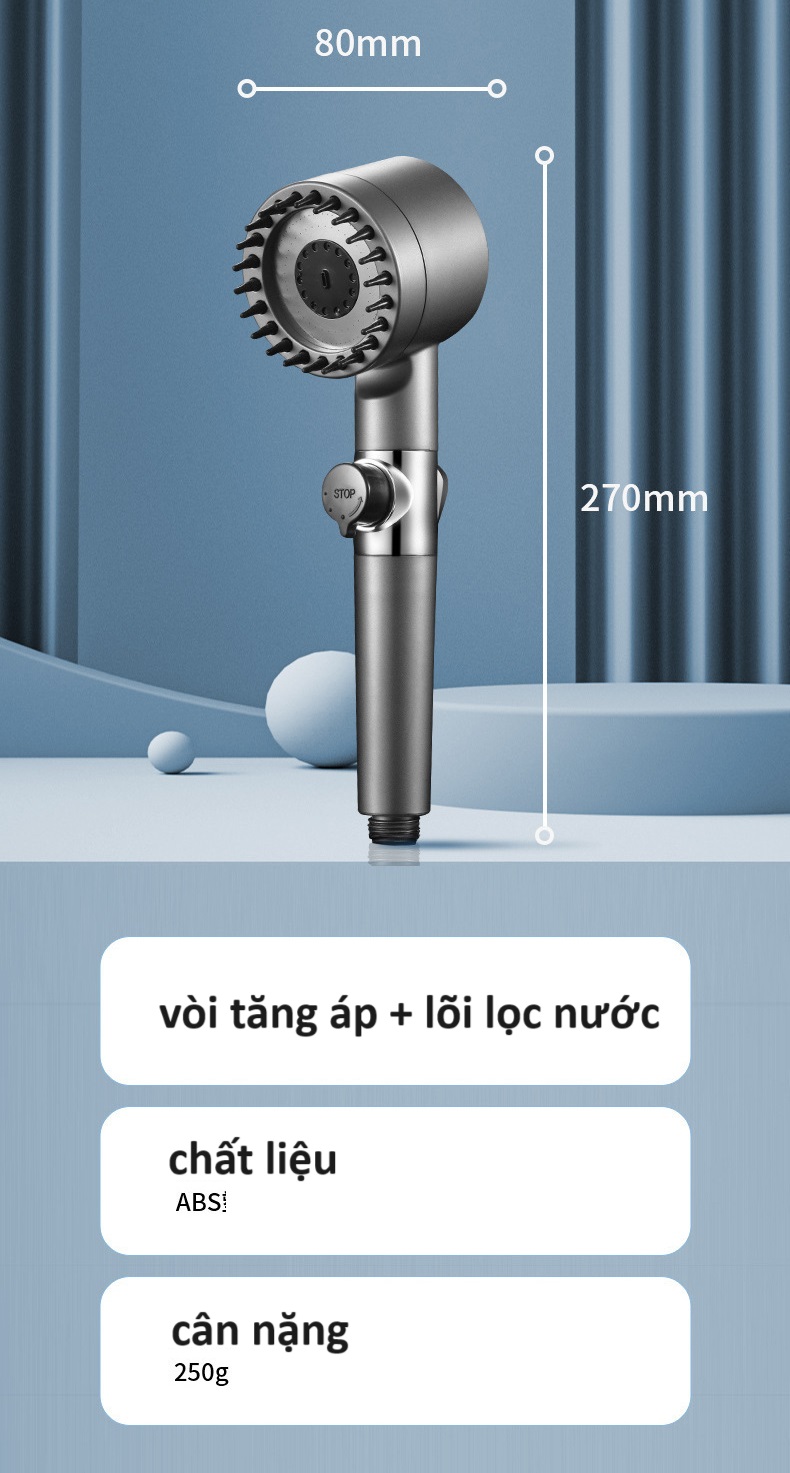 Vòi nước hoa sen áp lực tiết kiệm nước, vòi hoa sen có thể tháo rờitương tự của Dy s0n vòi sen lọc ion âm vòi sen xịt tayVòi xịt dạng mát xa, sức nước áp lực tiết kiệm nước chỉ bằng một cú nhấp chuộtdễ dàng lắp ráp, có nút ấn dễ dàng nhấn nước chảy và thay đổi các chế độ dòng chảy nước từ nhỏ đến lớn với nút bấm bên hông , các bạn có thể chỉnh các mức nước 3 chế độ 1 cách dễ dàng từ nhỏ đến lớn, ko bị cứng ko bị gỉ séc khi sử dụng lâu ngày.Ngoài ra còn 1 nút STOP bên dưới vòi sen, giúp ngăn dòng chảy dễ dàng thuận tiện mà không cần phải chạy tới vặn vào nút mở nước , các tia nước cực nhỏ rất tiết kiệm nước,Vật liệuABS, vòi dễ lắp đặt và sử dụngBẠN sẽ thấy hài lòng với loại VÒI NƯỚC này nhé Giá sản phẩm trên Tiki đã bao gồm thuế theo luật hiện hành. Bên cạnh đó, tuỳ vào loại sản phẩm, hình thức và địa chỉ giao hàng mà có thể phát sinh thêm chi phí khác như phí vận chuyển, phụ phí hàng cồng kềnh, thuế nhập khẩu (đối với đơn hàng giao từ nước ngoài có giá trị trên 1 triệu đồng).....