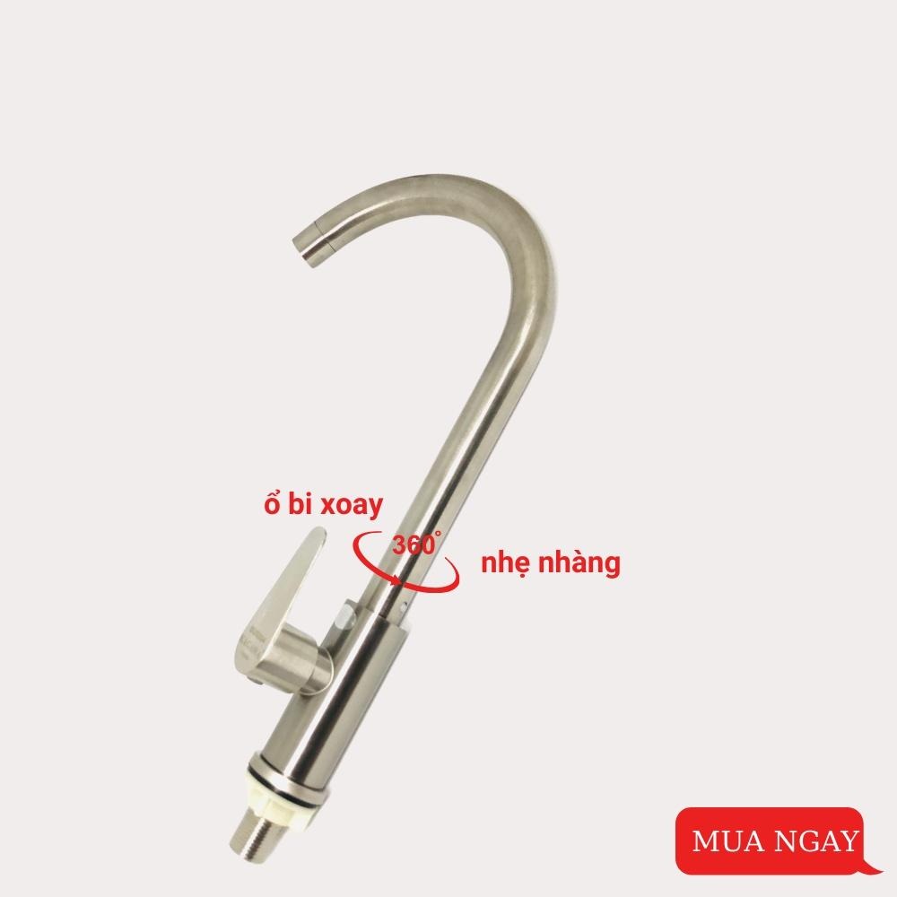 Vòi Rửa Chén Bát Lạnh Inox 304 xoay 360 độ dùng cho 2 hộc chậu ống phi 24