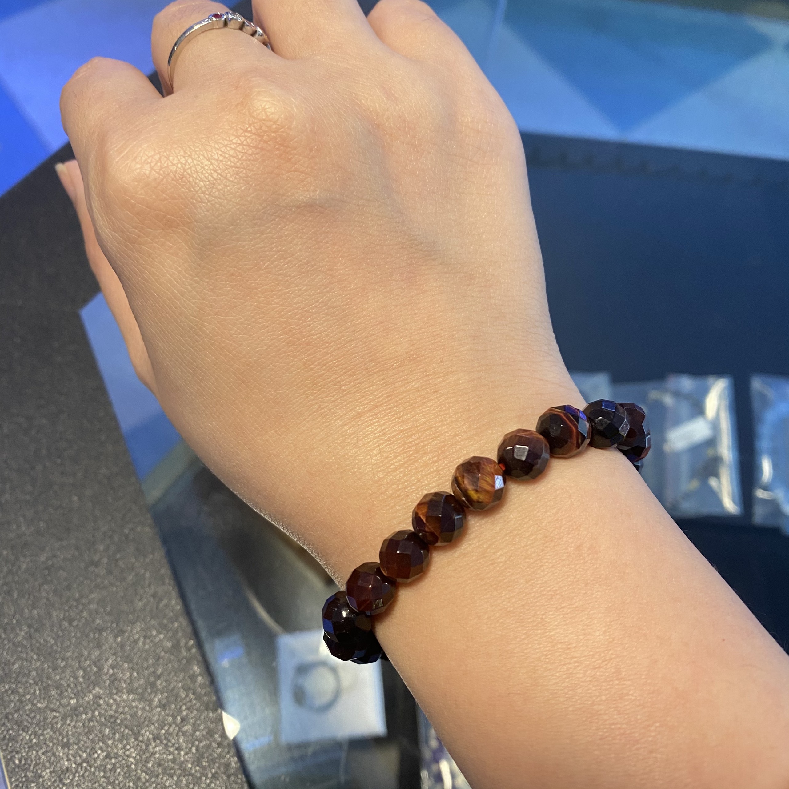 Vòng Đá Mắt Hổ Đỏ Mài Cạnh Giác