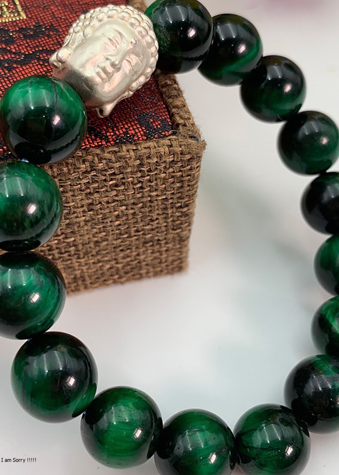 Vòng Đá Mắt Hổ Xanh Lá Charm Đầu Phật Bạc Ta