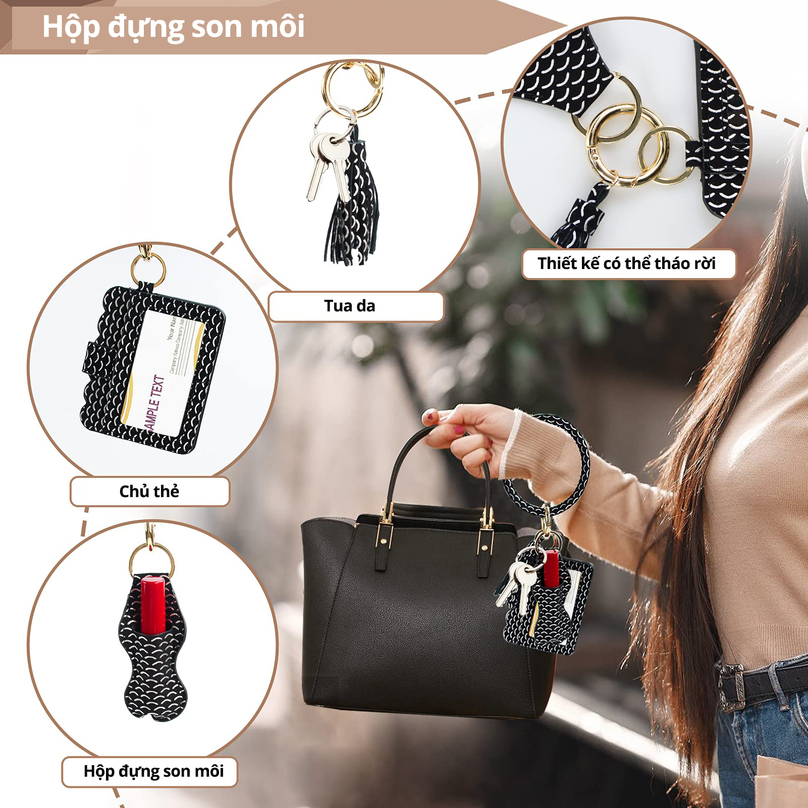 Vòng đeo tay móc khóa thẻ đựng son có ví thẻ bỏ túi tay móc khóa bằng da có tua và giá đỡ cho nữ