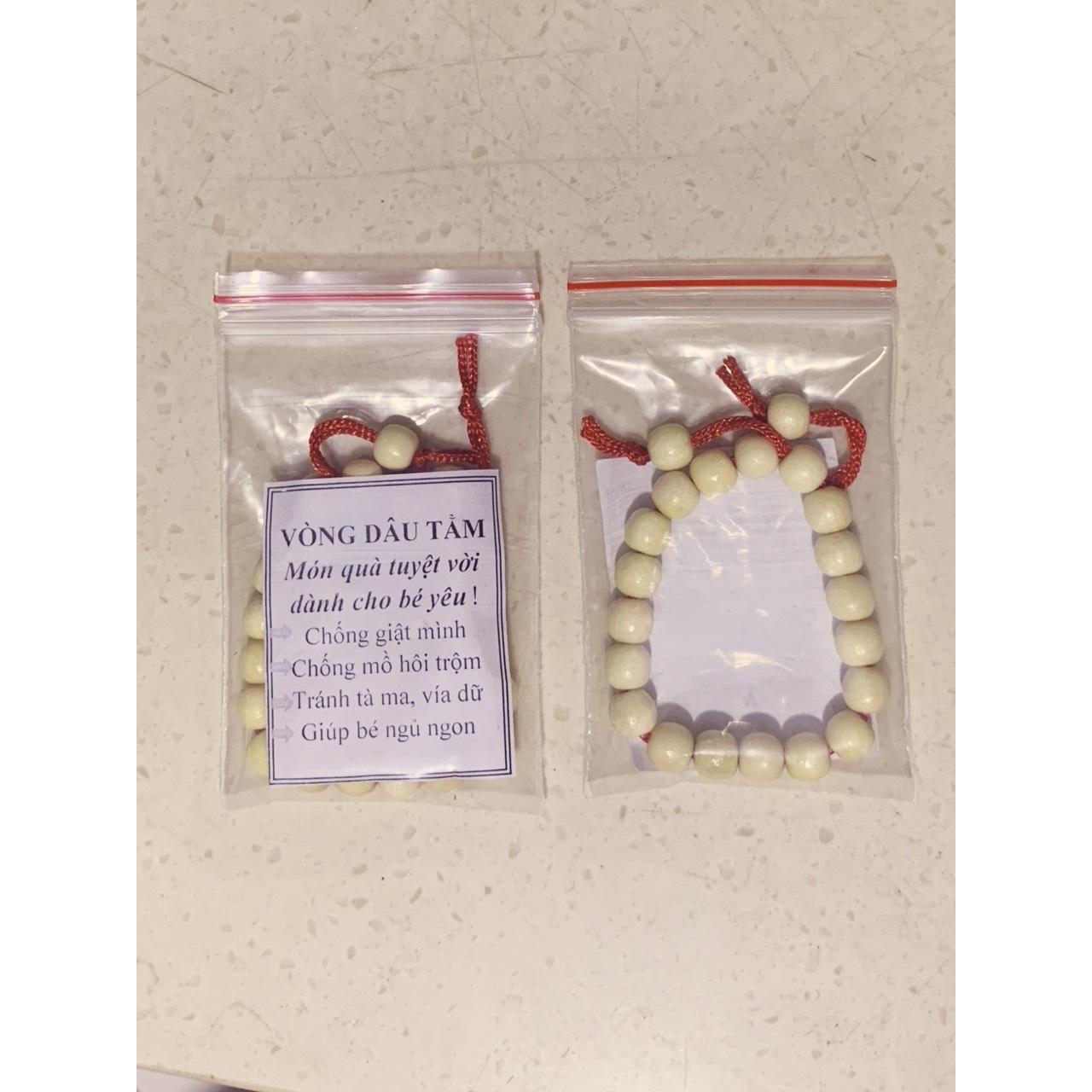 –Tên sản phẩm: Vòng dâu tằm cho bé – Nơi sản xuất: Trong nước * ĐẶC ĐIỂN NỔI BẬT Vòng dâu tằm thường được đeo 2 vòng ở 2 tay, hay 1 vòng ở tay và 1 vòng ở chân cho bé hoặc để 1 vòng ở đầu giường; dưới gối cho bé khi mới sinh hoặc khi đưa bé đi ra ngoài để tránh Ma, Tà, sài đẹn, tránh những người có vía nặng. Vòng dâu còn là món quà ý nghĩa vào dịp đầy tháng, sinh nhật bé, dành tặng cho bà bầu với ý nghĩa cầu chúc bình an, khỏe mạnh. Vòng dâu tằm đeo tay, chân cho bé Vòng dâu tằm trơn Đẹp siêu rẻ Sợi chỉ đỏ có ý nghĩa kích thích trí tuệ cho trẻ – Màu sắc: như hình – Chất liệu: dâu tằm – Kích thước: ~5cm – Trọng lượng: 10 gram – Là sản phẩm tiện ích cần thiết cho bé Giá sản phẩm trên Tiki đã bao gồm thuế theo luật hiện hành. Bên cạnh đó, tuỳ vào loại sản phẩm, hình thức và địa chỉ giao hàng mà có thể phát sinh thêm chi phí khác như phí vận chuyển, phụ phí hàng cồng kềnh, thuế nhập khẩu (đối với đơn hàng giao từ nước ngoài có giá trị trên 1 triệu đồng).....
