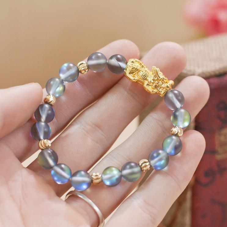 Vòng nữ phong thủy mix tỳ hưu nhân tạo màu xanh size 8 ly V110-8 -SP 1