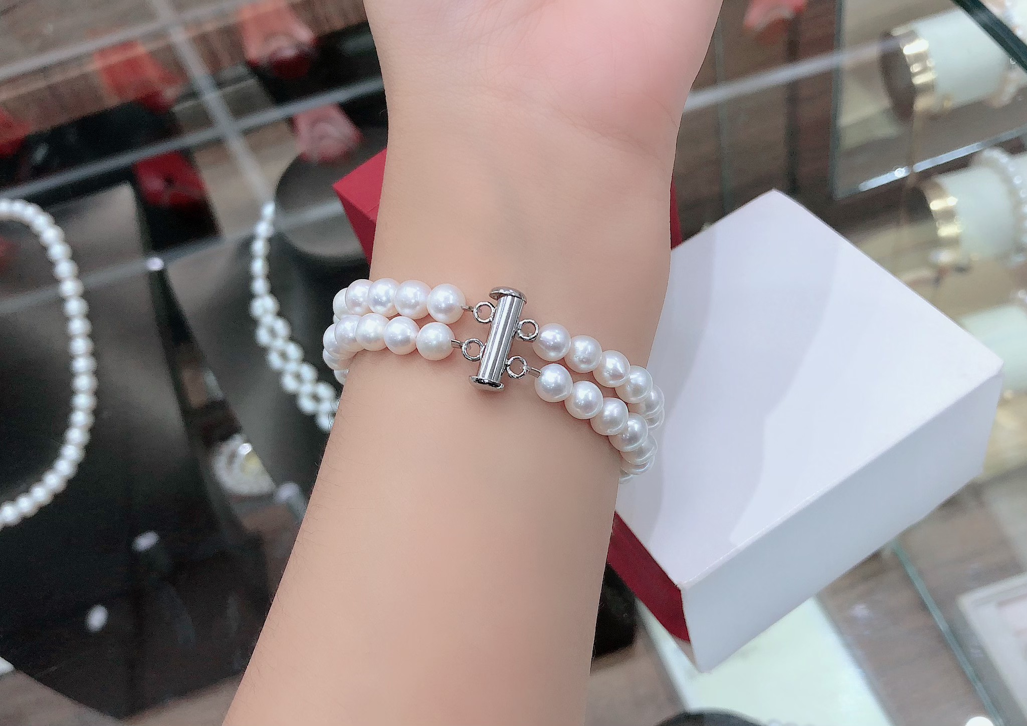 Vòng tay ngọc trai thật - ngọc tròn 6-7li màu trắng sang trọng