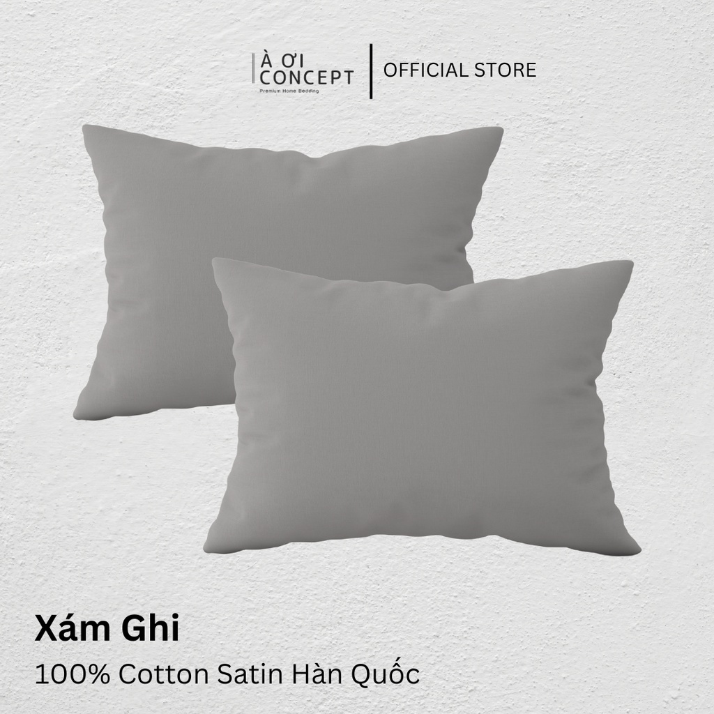 Vỏ Gối Nằm Cotton Satin Hàn Quốc Cao Cấp À Ơi Concept Màu Trơn Size 50x70 cm