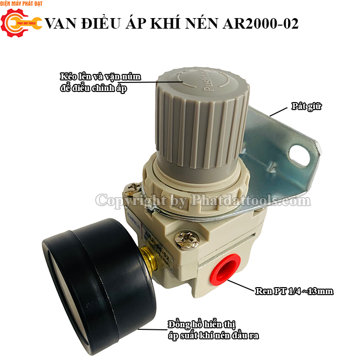 *Van điều áp là phụ tùng máy nén khí quan trọng, có vai trò điều chỉnh áp suất đầu ra sao cho phù hợp nhất với mục đích người sử dụng và đảm bảo nguồn khí nén chất lượng nhất dành cho các dụng cụ sử dụng khí nén. Hay đơn giản hơn, loại van này chính là thiết bị làm giảm áp suất của lượng khí nén ở đầu vào tới một giá trị mong muốn ở đầu ra. **Cấu tạo van điều chỉnh áp suất khí nén Một chiếc van điều tiết khí nén được cấu tạo bởi 2 bộ phận chính gồm cụm chỉnh áp lực bằng kim loại và đồng hồ đo áp. Ngoài ra, mỗi van điều áp đều được trang bị bộ phận đỡ bằng kim loại. *Đồng hồ đo áp: Gồm 1 núm điều chỉnh áp và mặt đồng hồ hiển thị mức áp suất bằng kim loại giúp việc theo dõi áp suất trở nên dễ dàng hơn. Cụm chỉnh áp: Có đường gen đẩy khí ra vào với đầy đủ kích cỡ chân ren phù hợp cho từng loại máy móc có kích thước to, nhỏ khác nhau. Ngoài ra, chỉ với một van nhưng người dùng có thể điều chỉnh với nhiều mức áp lực khí nén khác nhau.*Ngoài ra, van điều áp khí nén điện tử còn bao gồm: Bộ phận trượt chính được gắn với lò xo, đầu vào và đầu ra của khí, đầu vặn gắn với lò xo. *Bộ phận điều khiển trượt chính: Lò xo áp lực luôn đi liền với bộ phận này. Ốc vít áp suất tác động trực tiếp lên lò xo, khiến lò xo co giãn tạo áp lực cho thành phần trượt chính.Đầu vặn gắn với lò xo: Điều chỉnh độ co giãn của lò xo tương ứng với áp lực dòng khí nén theo mong muốn của người dùng.Các khoang chứa tại đầu ra và đầu vào: Đầu ra và đầu vào của áp suất thường là mỗi đầu một bên. **Thông số kĩ thuật :- Model :AR2000-02- Chất liệu :Hợp kim nhôm- Đồng hồ hiển thị :0-10kgf/cm3 ,0-1Mpa- Áp suất tối đa :10kgf/cm3- Chân ren kết nối :13mm- Xuất xứ :Đài Loan **Cách sử dụng van điều áp hiệu quả- Tiến hành lắp đặt van - Lắp van vào đường ống đầu ra và đầu vào theo quy định. Khi lắp, phải để đầu lò xo quay lên trên còn mặt đồng hồ đo áp suất thì lắp ở chiều người dùng dễ nhìn thấy nhất. - Vận hành thử để dòng khí nén chảy qua van- Khi vận hành thử, đồng hồ đo áp suất sẽ đo được áp lực khí đi qua van là bao nhiêu. Nếu phù hợp thì sử dụng luôn, còn nếu thông số đo được không phù hợp với nhu cầu sử dụng thì người dùng tiến hành điều chỉnh lại van. - Điều chỉnh lại thông số van - Vặn van theo chiều kim đồng hồ để nén căng hơn. Và ngược lại, vặn ngược chiều kim đồng hồ để giảm áp lực khí nén. **Một số lưu ý khi sử dụng van điều áp máy nén khí - Để đảm bảo an toàn cho quá trình vận hàn máy nén khí nói chung và van điều áp nói riêng, người dùng cần lưu ý một số điểm sau: - Sử dụng van điều áp có áp suất thấp hơn hoặc bằng lượng áp suất lớn nhất của máy do nhà sản xuất cung cấp.- Lựa chọn loại van phù hợp với máy bơm hơi khí nén.- Không để máy hoạt động quá tải vì có thể khiến cho van điều áp bị hỏng.- Thường xuyên kiểm tra, theo dõi chỉ số trên đồng hồ đo áp trong quá trình vận hành. - Thực hiện công việc vệ sinh, bảo dưỡng máy theo định kỳ.Giá sản phẩm trên Tiki đã bao gồm thuế theo luật hiện hành. Bên cạnh đó, tuỳ vào loại sản phẩm, hình thức và địa chỉ giao hàng mà có thể phát sinh thêm chi phí khác như phí vận chuyển, phụ phí hàng cồng kềnh, thuế nhập khẩu (đối với đơn hàng giao từ nước ngoài có giá trị trên 1 triệu đồng).....
