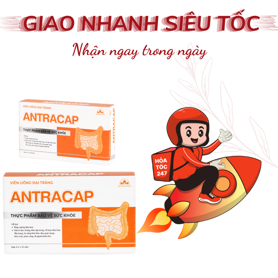 VIÊN UỐNG ĐẠI TRÀNG ANTRACAP (HỘP 30 VIÊN)Hỗ trợ tăng cường tiêu hóa, giúp giảm triệu chứng viêm đại tràng, rối loạn tiêu hóa: đầy bụng, ăn uống khó tiêu, đau quặn bụng, tiêu chảy, phân sống, đi ngoà...