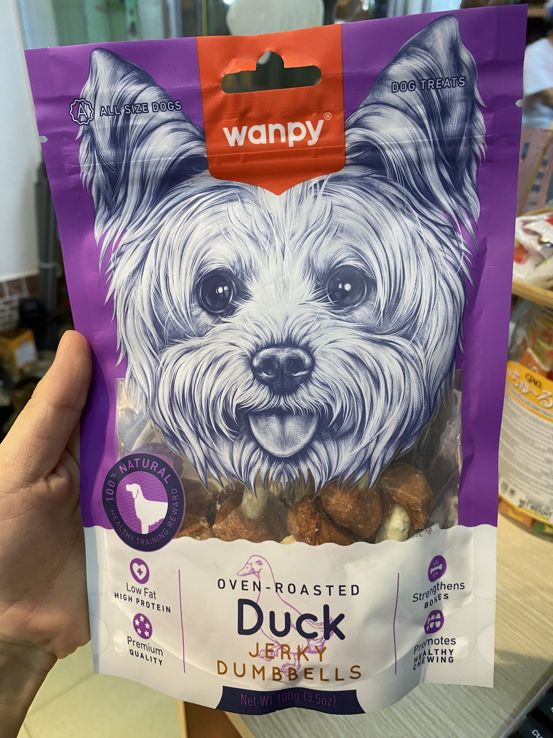 Chi tiết bánh thưởng thịt gà sấy Wanpy Chicken Jerky & Biscuit Twists 100g Wanpy là thương hiệu thức ăn bánh thưởng thú cưng được yêu thích ở nội địa Trung Quốc. Sản phẩm ít chất béo, Protein cao tốt cho sức khỏe Xương chắc khỏe, chăm sóc răng miệng Bánh thưởng cho chó thịt gà sấy miếng Wanpy kết hợp với nhiều thành phần khác nhau như Wanpy Oven-Roasted Chicken Jerky & Biscuit Twists: bánh quy cuộn khô gà Thịt gà, bột mì, đường, dầu cọ, Glycerin, Protein động vật, tinh bột, lecithin, muối, canxi cacbonat, gelatin, oligosaccharides, flavone, chất tạo màu (chứa chất tạo màu được phép của EC). Wanpy Oven- Roasted Chicken Jerky & Rawhide Twists: Gà sấy cuộn da bò dạng que Thịt gà, da bò, Glycerin,muối. Wanpy Oven-Roasted Chicken Jerky Dumbbells: thịt gà sấy dạng quen quả tạ cho chó Thịt gà, da bò, bột gạo nếp, protein thực vật, glycerin, tinh bột, sorbitol, muối, chất tạo màu ( chứa chất tạo màu được phép của EC). Hướng dẫn sử dụng: như một bữa ăn nhẹ, luôn cung cấp đủ nước sạch cho chó. Hướng dẫn bảo quản: Bảo quản nơi khô thoáng, mát tránh ánh nắng trực tiếp. Luôn đóng túi kín sau khi sử dụng Xuất xứ thương hiệu: Trung QuốcGiá sản phẩm trên Tiki đã bao gồm thuế theo luật hiện hành. Bên cạnh đó, tuỳ vào loại sản phẩm, hình thức và địa chỉ giao hàng mà có thể phát sinh thêm chi phí khác như phí vận chuyển, phụ phí hàng cồng kềnh, thuế nhập khẩu (đối với đơn hàng giao từ nước ngoài có giá trị trên 1 triệu đồng).....Sản phẩm này là tài sản cá nhân được bán bởi Nhà Bán Hàng Cá Nhân và không thuộc đối tượng phải chịu thuế GTGT. Do đó hoá đơn VAT không được cung cấp trong trường hợp này.