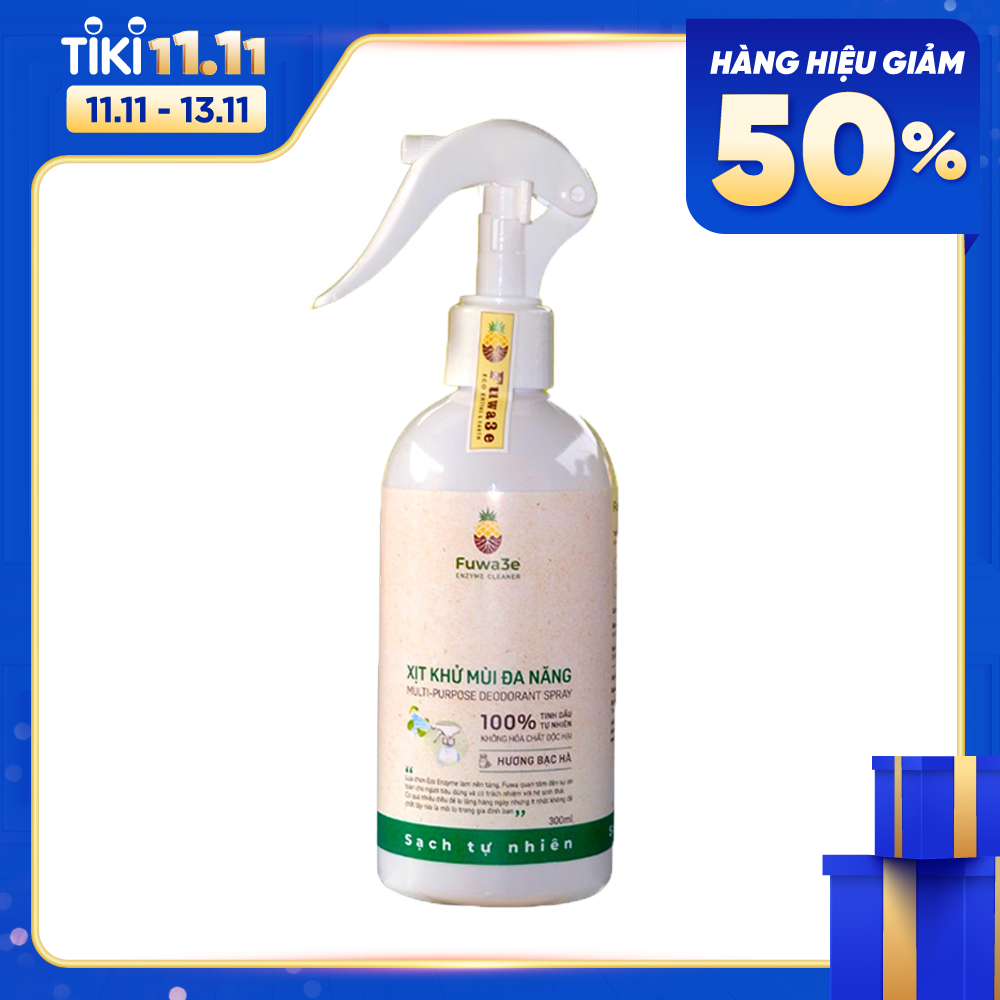 * Thông tin Xịt khử mùi đa năng Fuwa3e 300ml khử mùi phòng tủ quần áo xe hơi thú cưng Công việc bận rộn đôi khi khiến chúng ta bị stress, một chút mùi không dễ chịu cũng khiến tâm trạng chúng ta trở nên không tốt. Căn phòng, quần áo, xe ôtô, giày dép… là những nơi dễ có mùi khó chịu gây mất tự tin mà còn tiềm ẩn nguy cơ gây hại cho sức khỏe gia đình. Với thành phần được chiết xuất 100% từ các nguyên liệu thiên nhiên, cực kỳ an toàn bạn có thể xịt lên bề mặt hoặc không gian muốn khử mùi. Đặc biệt, sản phẩm có mùi hương tự nhiên từ tinh dầu Bạc Hà giúp tạo cho bạn cảm giác tươi mát, thư thái khi sử dụng. * Công dụng của Xịt khử mùi đa năng Fuwa3e 300ml khử mùi phòng tủ quần áo xe hơi thú cưng Khử mùi giúp căn phòng, xe ôtô, tủ quần áo trở nên thơm mát Ức chế các vi khuẩn có hại Khử mùi hôi, có thể xịt thẳng lên lông thú, xịt xung quanh khu vệ sinh, môi trường Tinh dầu có đặc tính chống nấm, kháng khuẩn cao và tác dụng xua đuổi côn trùng một cách tự nhiên. * Thành phần của Xịt khử mùi đa năng Fuwa3e 300ml khử mùi phòng tủ quần áo xe hơi thú cưng Enzyme sinh học từ Dứa, tinh dầu bạc hà, tinh dầu dã hương, tinh dầu hương nhu. * Hướng dẫn sử dụng Xịt khử mùi đa năng Fuwa3e: Lắc đều trước khi sử dụng.Giá sản phẩm trên Tiki đã bao gồm thuế theo luật hiện hành. Bên cạnh đó, tuỳ vào loại sản phẩm, hình thức và địa chỉ giao hàng mà có thể phát sinh thêm chi phí khác như phí vận chuyển, phụ phí hàng cồng kềnh, thuế nhập khẩu (đối với đơn hàng giao từ nước ngoài có giá trị trên 1 triệu đồng).....