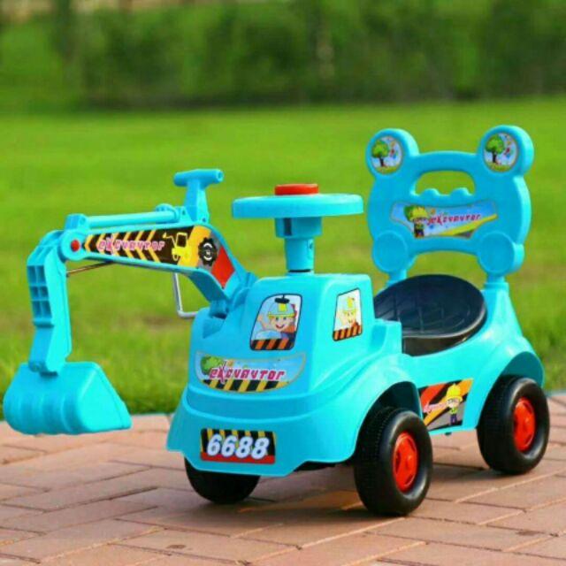 Xe cẩu ngồi chòi chân cho bé. Nhạc, còi: Có. Có vô lăng và cần gạt để điều chỉnh gầu múc. Độ tuổi: Từ 1 - 4 tuổi Tải trọng cho phép: 25kg Có tựa lưng, thùng chứa đồ dưới nắp ghế...