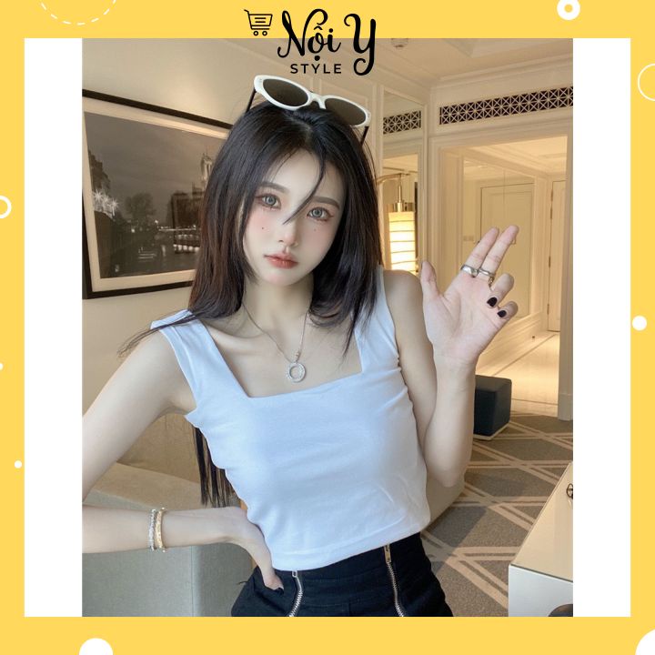Áo 2 Dây Bản To Cổ Vuông Màu Trơn Cho Nữ Dáng Ôm Phong Cách Hàn Siêu Hot