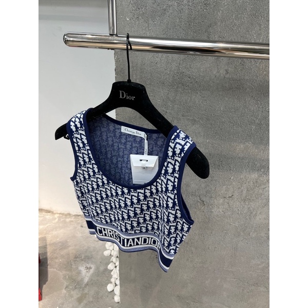 Áo ba lỗ len croptop hoạ tiết chữ thương hiệu Dior CD cao cấp