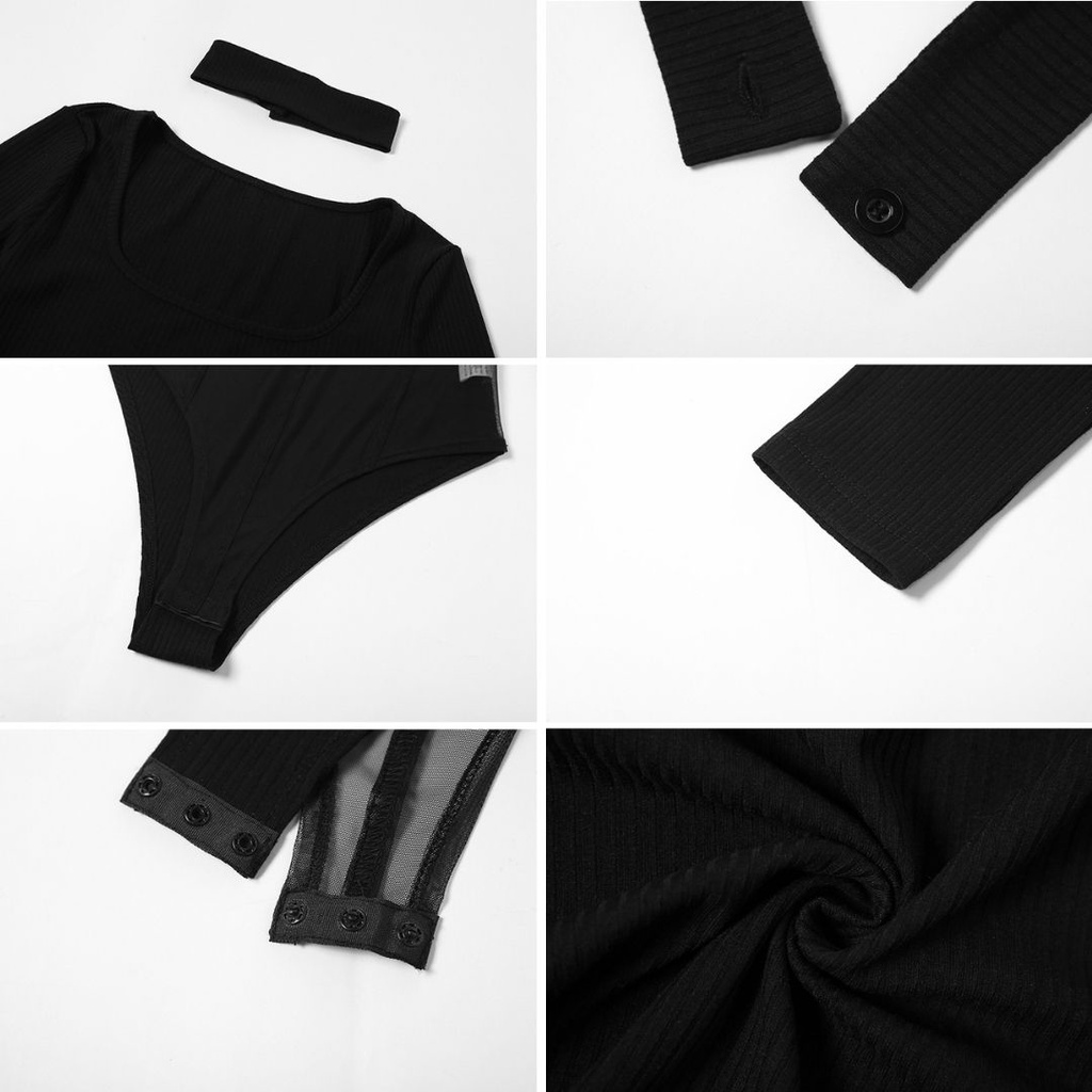 Áo bodysuit dài tay phối ren lưới dọc tạo eo thon thể thao Châu Âu, áo tập nhảy sexy dance