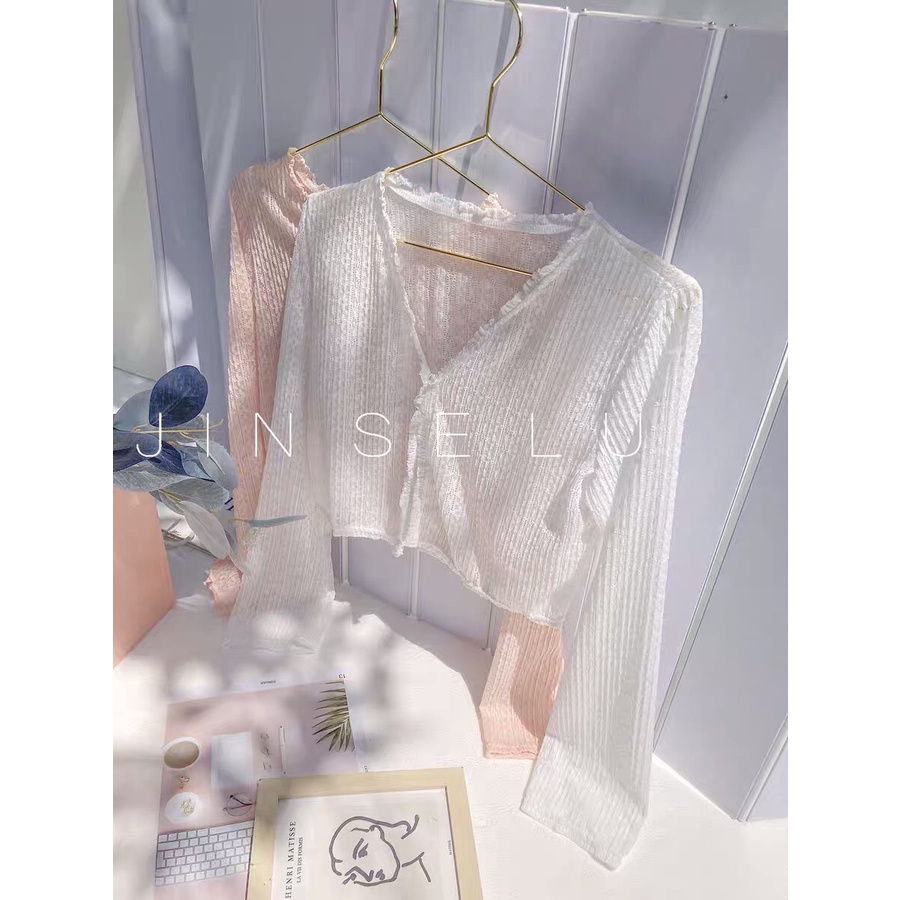 Áo cardigan mỏng 2 cúc phong cách nhẹ nhàng hàn quốc