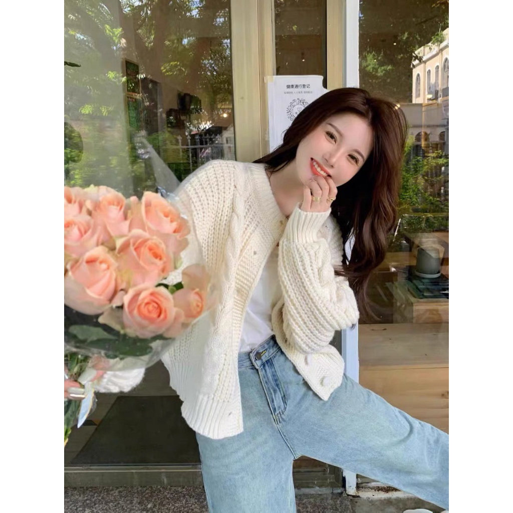 Áo cardigan nữ dệt kim dày ấm Deliz áo len cổ tròn vặn thừng hàng quảng châu loại 1 Devil Princess