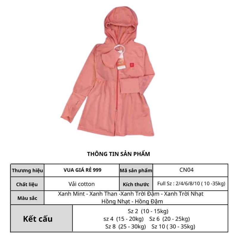 Áo chống nắng trẻ em xuất nhật UNI dáng dài