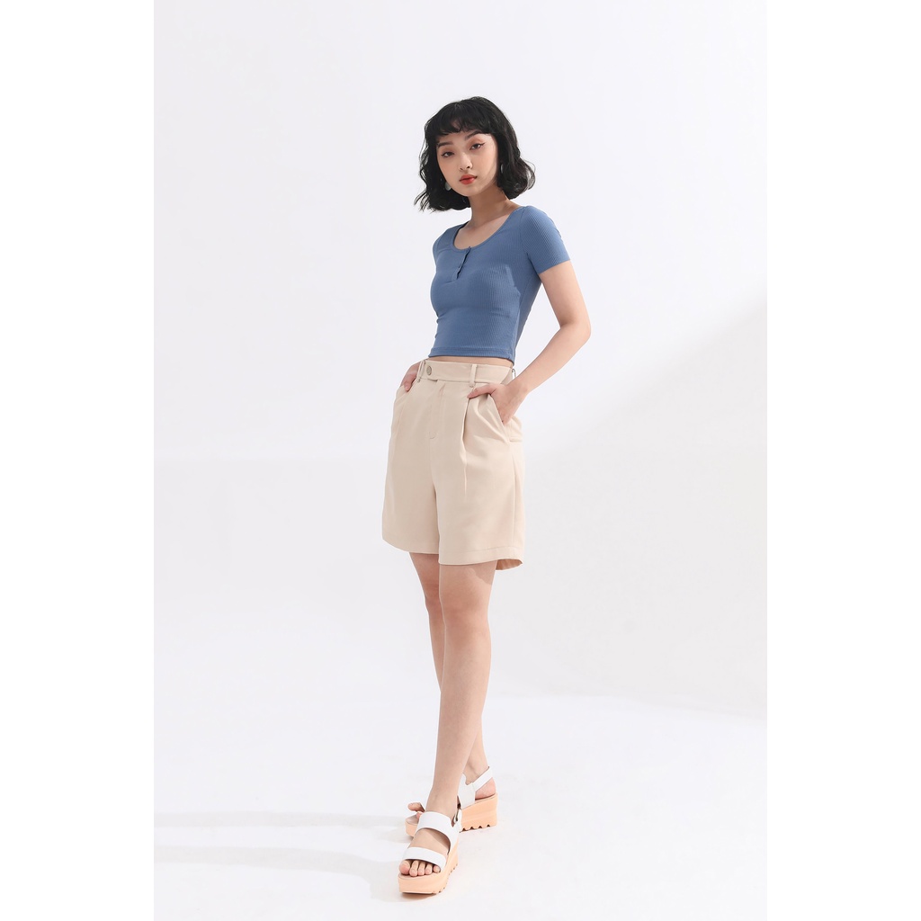Áo Croptop cổ U Khuy Ngực MOMOCO vải cotton tăm nhỡ co giãn 4 chiều M2958