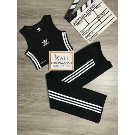 Áo croptop das tay ngắn, quần suông 3 sọc Eothon60