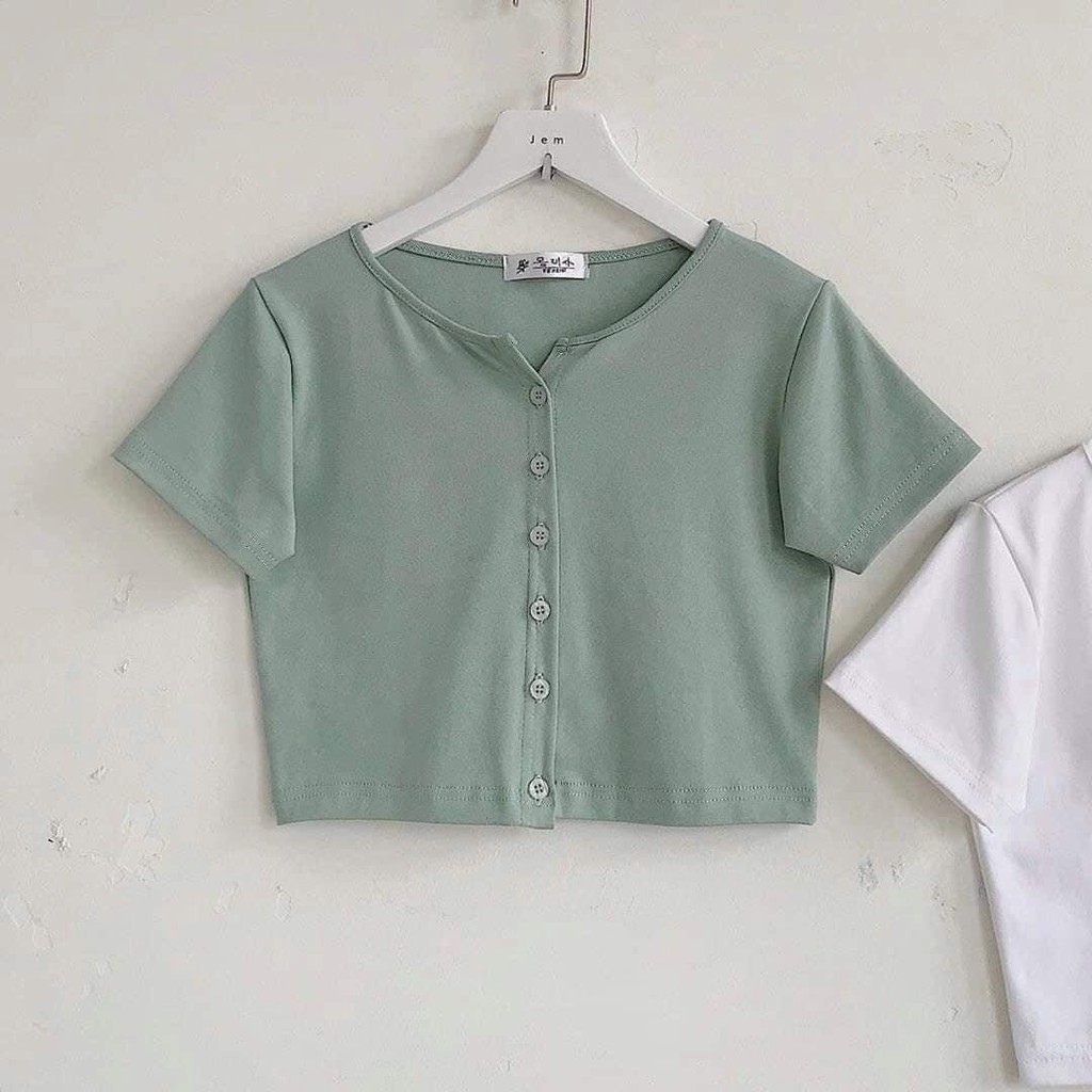 Áo croptop nút ngực chất bozip cotton co dãn tốt mặt mịn, không xù.
