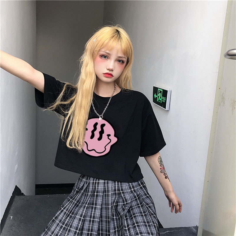 Áo croptop nữ tay ngắn cổ tròn vải thun cotton kiểu hàn quốc CR007 Miucho in hình hoạ tiết