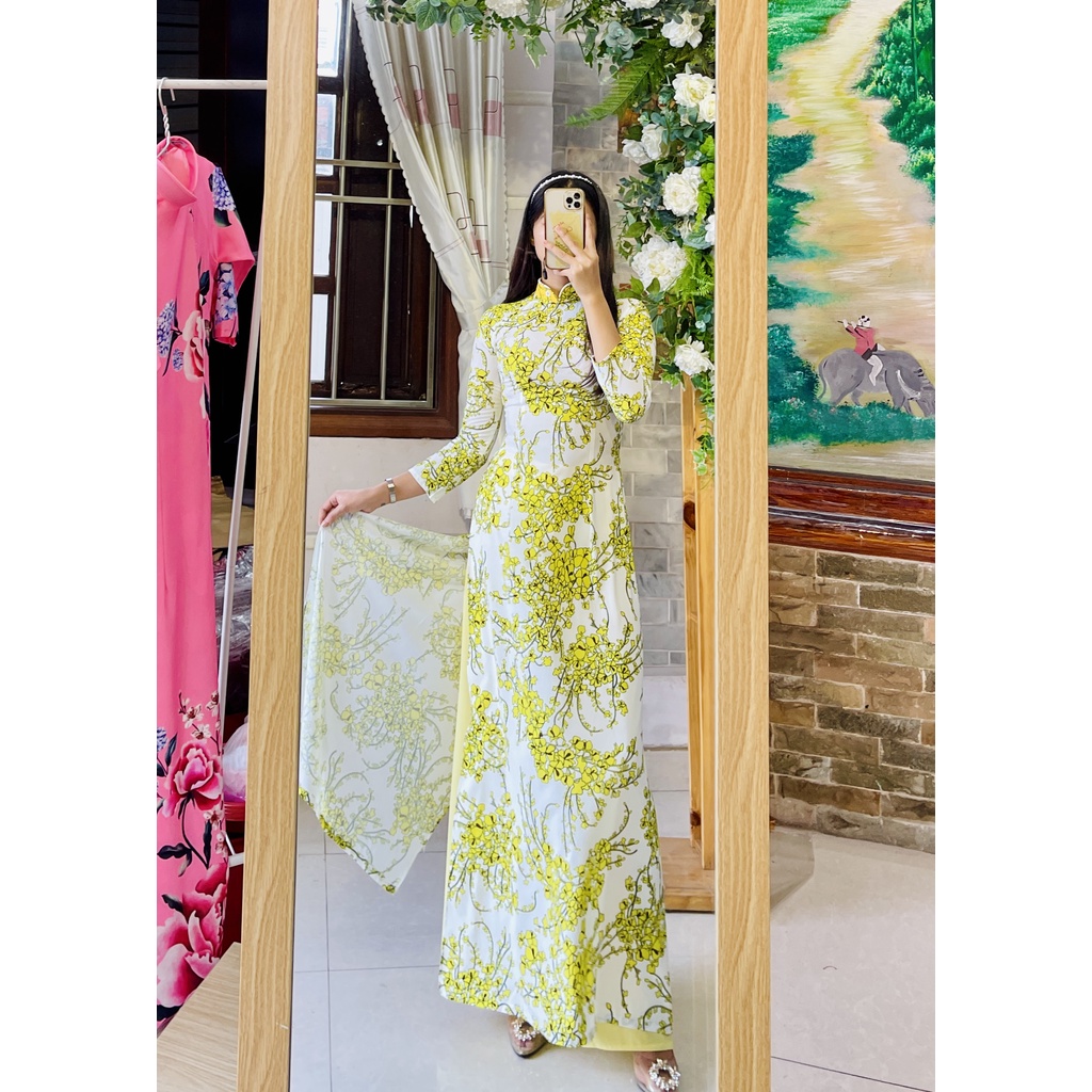 CAM KẾT HÌNH THẬT TỰ CHỤP Giá lẻ áo không kèm quần - Khách mua quần chọn thêm sản phẩm quần lẻ (chọn màu quần pm shop). Áo dài in hoa tươi sáng chất lụa mỏng nhẹ co giãn 4 chiều mỏng nhẹ mát. Áo may 2 tà xòe nhẹ dáng chữ A tạo dáng đẹp thướt tha. Quần ống trung bình rộng xòe đẹp, có may phối một đoạn thun co giãn sau lưng để mặc thoải mái hơn. Nhắn tin shop khi cần tư vấn bạn nhé. Giá cực rẻ bán lẻ như bán buôn, phù hợp mua về mặc thay đổi theo mùa, mặc chụp hình, dự hội nghị, sự kiện, cưới hỏi, mặc Lễ, Tết - thay đổi nhiều mẫu không tiếc. Bình thường công tiệm may một áo dài ít nhất đã 200k rồi ạ chưa tính tiền vải, bằng giá nguyên bộ bên mình luôn. #aodai #aodainu #aodainam #aodaicodau #aodaicuoi #aocuoi #aodaicaocap #aodaicachtan #aodaistudio #aodaixinh #aodaidep #aodaidep+ #aodai4ta #aodai6ta #aodaimoi #aodaitruyenthong #aodaithanhly #aodaihoanhi #aodaikimsa #aodaicuoinu #aodaicuoidoi #aodaicuoitruyenthong