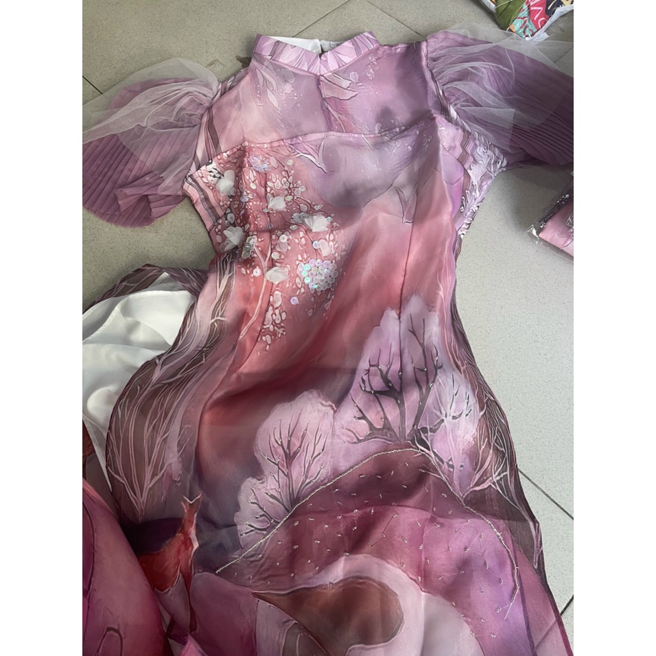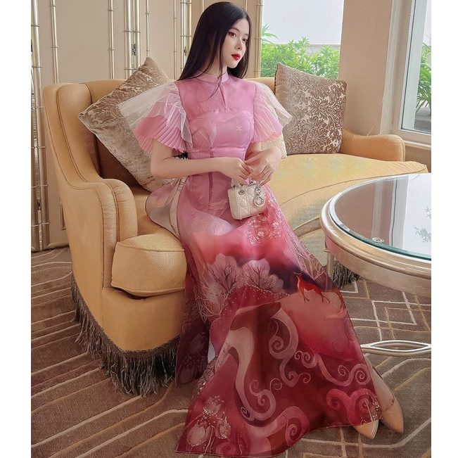 ÁO DÀI THIẾT KẾ KẾT CƯỜM , KIM SA CAO CẤP, Tay Áo xòe mới - Bộ gồm áo và quần