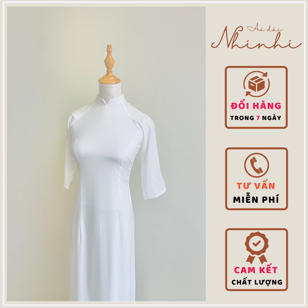 Áo dài trắng đi học truyền thống cổ vuông, áo dài nữ sinh 2 tà NHINHI lụa Nhật
