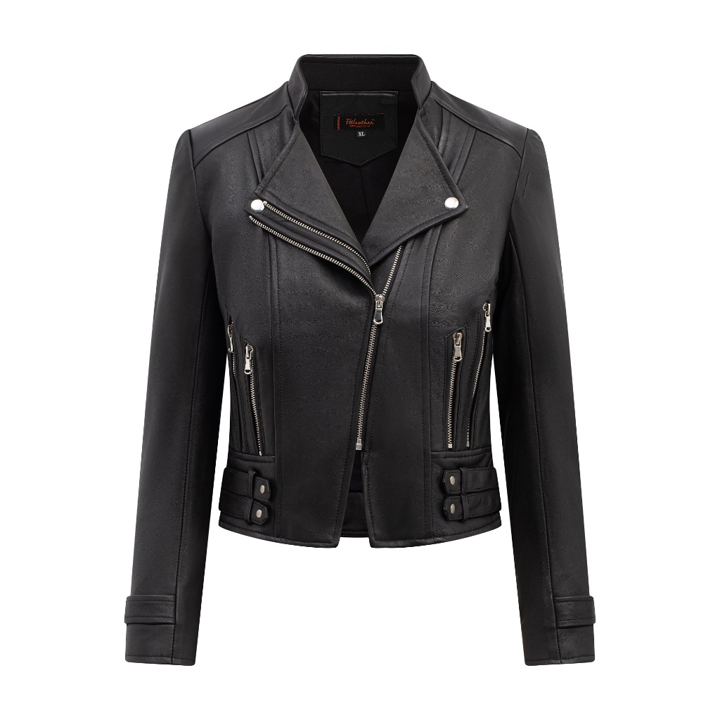 Áo Da Nữ FTT Leather Biker Jacket Da Cừu Phối Bốn Đai Hông AN303C